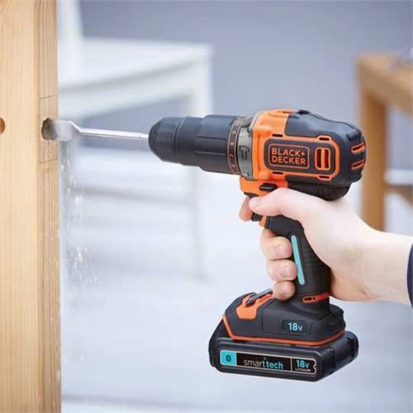 La BDCHD18KST possède la puissance et la vitesse nécessaires pour percer le bois et le métal. Elle dispose également d’une fonction de perceuse à percussion pour percer la pierre. La BDCHD18KST possède deux vitesses, une vitesse élevée pour le perçage dans le bois et le métal, une vitesse faible pour le vissage contrôlé. Avec ses 11 réglages de couple, vous pouvez parfaitement visser différents matériaux. Un éclairage LED illumine la surface de travail lorsque la machine est en cours d’utilisation. La batterie au lithium-ion conserve plus de 80 % de sa charge après 90 jours de non-utilisation, de sorte que le BDCHD18KST est toujours prêt à être utilisé. Grâce à sa vitesse variable, vous disposez d’un contrôle optimal lors du perçage et du vissage. Grâce au système de batterie coulissante, la batterie peut être changée rapidement et facilement et reste toujours bien fixée. Grâce à la poignée souple antidérapante, vous bénéficiez d’un plus grand confort lors du perçage. Dans le coffret inclus, vous pouvez ranger soigneusement le BDCHD18KST et ses accessoires.